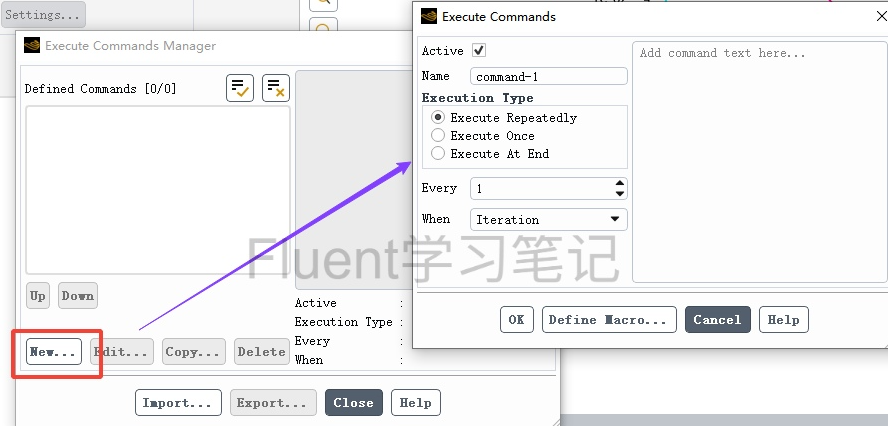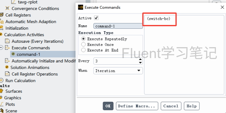 ⑤Define就是设置要执行的命令,Fluent预设了很多命令