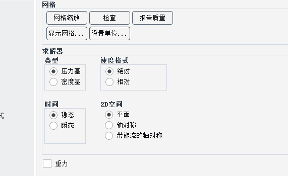 首先导入网格,然后勾选为稳态计算,并选择压力基求解器。