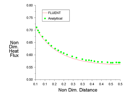 对热壁上无量纲热流进行计算,可以得到如下图所示的结果,由图可以发现,该结果与Fluent官方案例的结果一致: