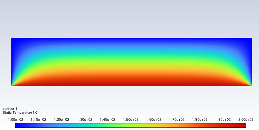 对封闭空腔辐射换热的仿真计算结果进行可视化处理,其温度云图如下图所示: