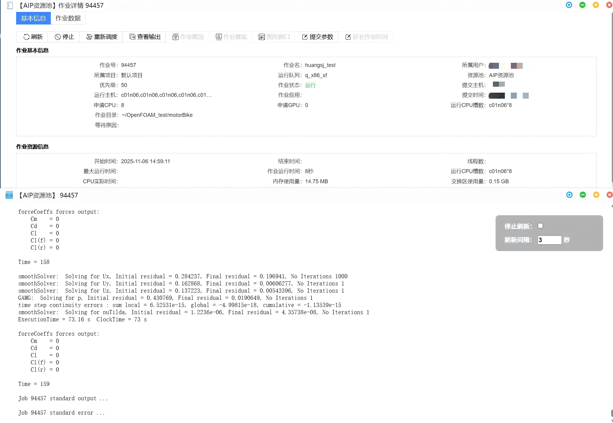 车辆外流场仿真虽能高效获取气动性能数据( 如阻力 、升力), 但复杂车身几何的网格适配性 、湍流模型的非线性迭代、高雷诺数流场的精细捕捉等核心环节,对数值算法的稳定性、网格生成工具的鲁棒性及硬件资源的并行效率提出了严苛要求。因此, —个适配的高性能计算平台,对 OpenFOAM 的高效求解至关重要。