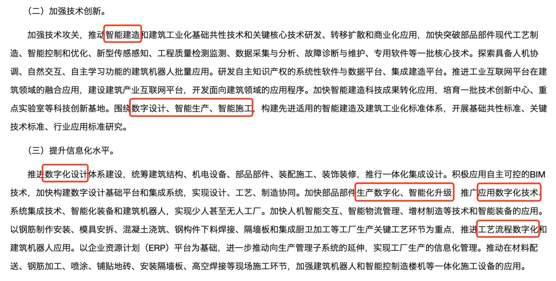 国家发改委、住建部联合印发的《智能建造与新型建筑工业化协同发展实施方案》中,