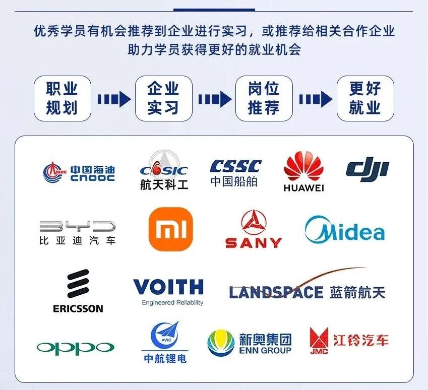 我们与中车、华为、三一重工等100+行业领先企业建立合作,优秀学员直接推荐就业。往期学员中: