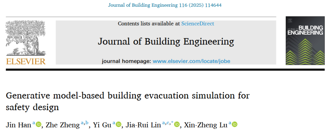 论文:Han, J., Zheng, Z., Gu, Y., Lin, J. R., & Lu, X. Z. (2025). Generative Model-Based Building Evacuation Simulation for Safety Design. Journal of Building Engineering, 116, 114644.