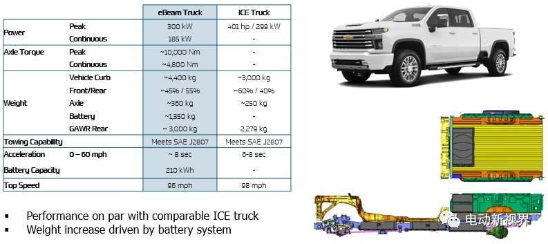雪佛兰Silverado HD 2500被选为功能原型车轴的演示车。将内部燃烧传动系和相关部件从车辆上移除,以便为所需的电气基础设施腾出空间。