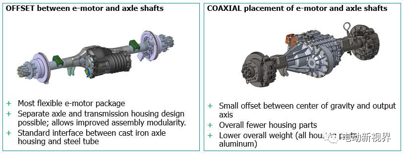 采埃孚为电驱动桥的驱动单元的架构考虑了两种不同的设计概念: