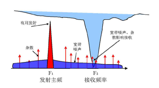 宽带噪声:发射机输出的功率中除去有用信号、杂散、谐波外,在宽泛的频率范围,噪声的功率谱密度。