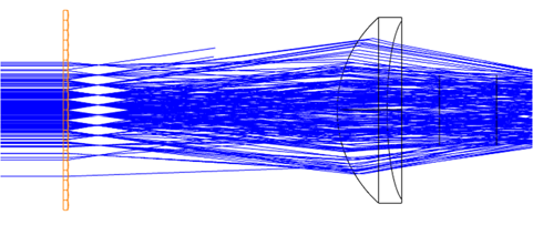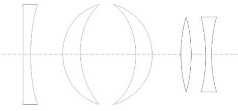 针对大视场下Petzval结构易产生严重球差的问题,团队引入海普冈结构平衡像差缺陷,最终形成4片透镜+海普冈结构的组合设计,其结构如图5所示。该结构不仅扩大了有效视场范围,还能高效校正彗差、畸变等多种光线像差,满足后组光学性能要求。