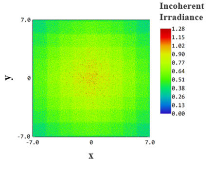 为解决高斯光束光照不均匀问题,团队在ZEMAX非序列模式下设计微透镜阵列匀光系统:选用高斯光源,设置光轴为z轴,微透镜阵列采用20×20排列,搭配OKP-1材质聚焦透镜,通过探测器监测确定像面位置(图12)。该系统能将高斯分布的激光转化为均匀分布的光束,非相干辐照度集中于0.51~0.90区间(图13),有效消除光照不均匀影响。