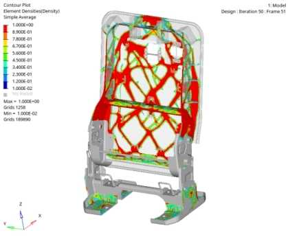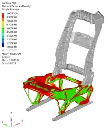 基于仿真驱动的座椅结构正向设计方法是一种高效、准确的设计方法。使用 Optistruct 在概念设计阶段,通过拓扑优化确定最优的材料分布和形状。本文主要结论: