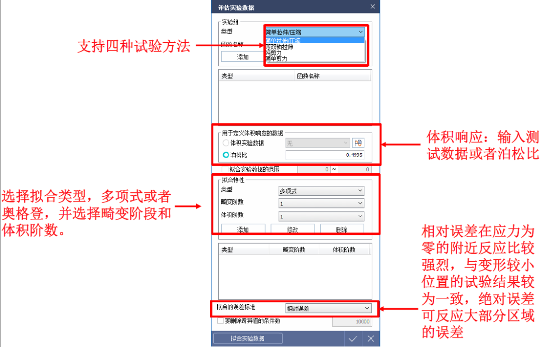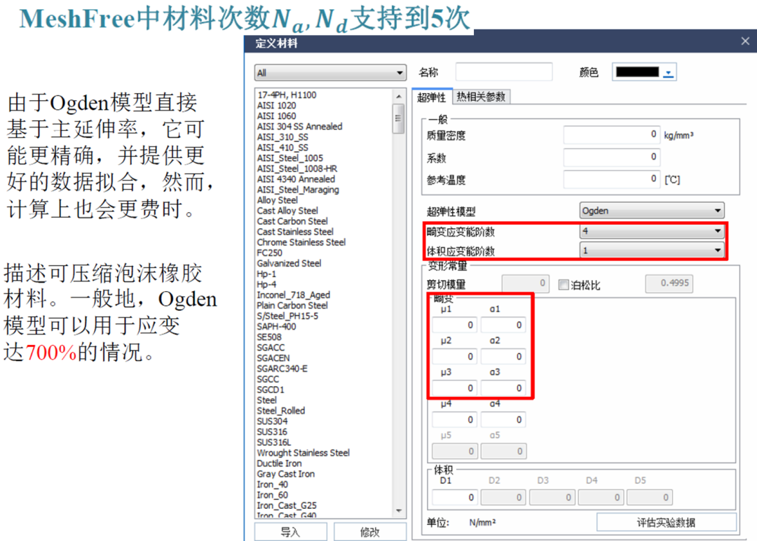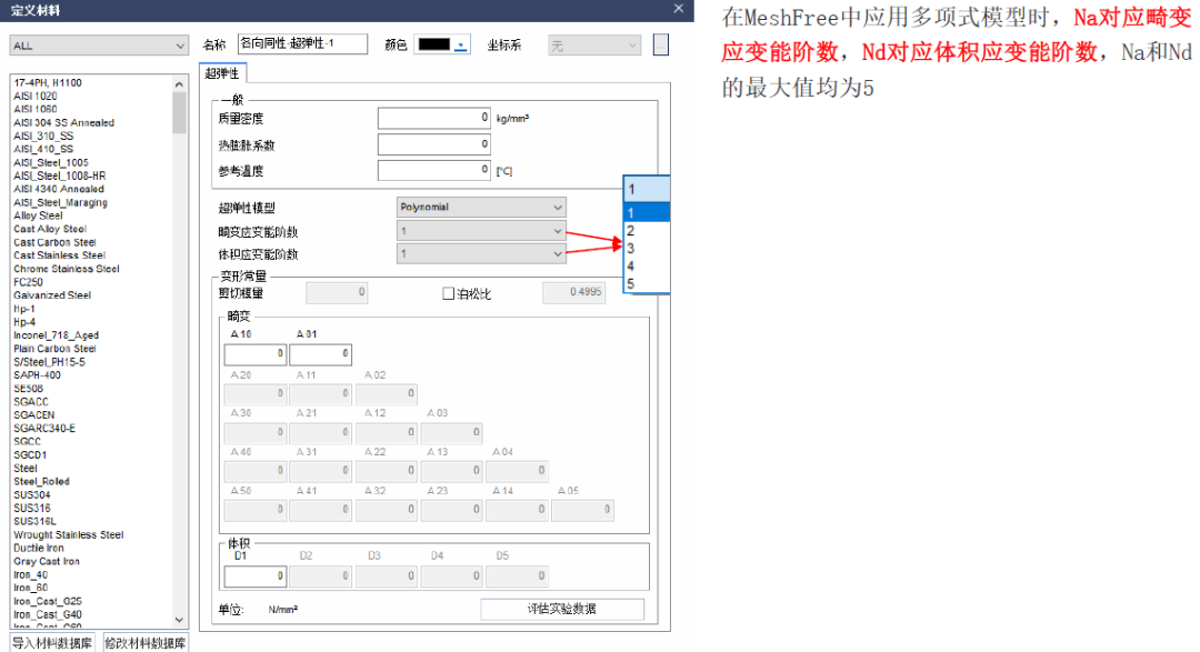 MeshFree中通过试验数据可方便获得超弹性模型的材料常数