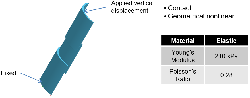在不考虑大变形的情况下,例如,薄板的弯曲,用线性分析会导致极大的变形和应力。实际上,考虑几何非线性后,其变形比线性分析要小得多