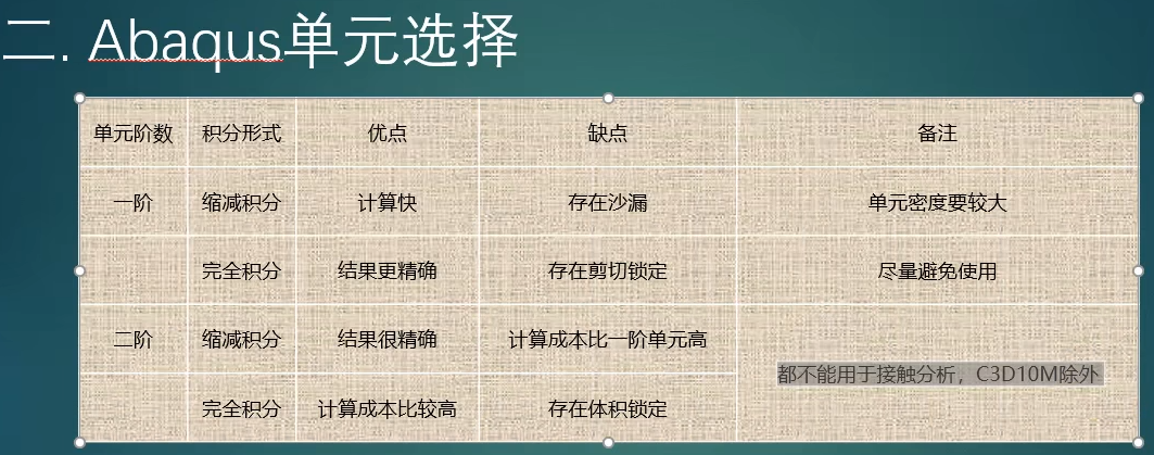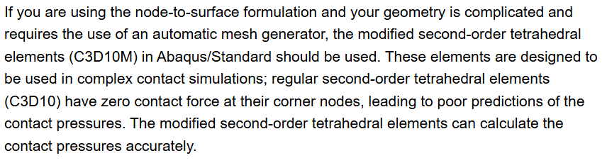 关于ABAQUS接触,最近看到很多观点:二阶单元不能用于接触分析。