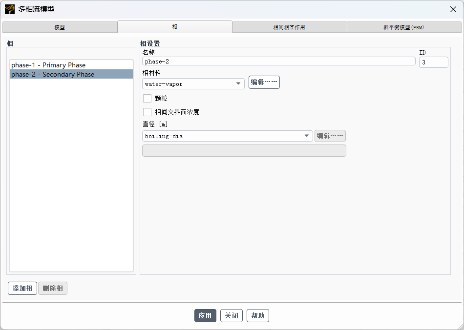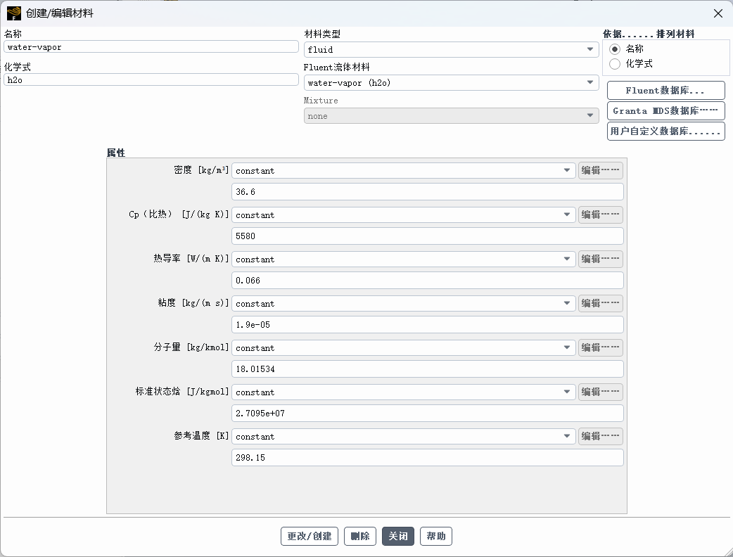依据相关文献中的数据,对材料进行设置,由于涉及到多相流沸腾,因此需要进行多种材料参数的设置,具体设置如下图所示: