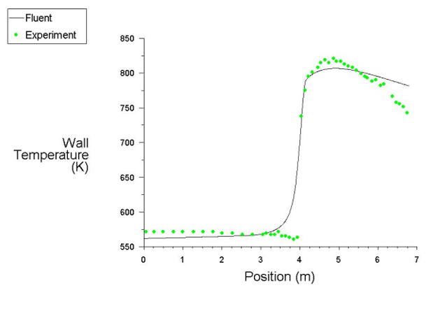 对壁面温度进行计算,可以得到如下图所示的结果,由图可以发现,该结果与Fluent官方案例的结果一致: