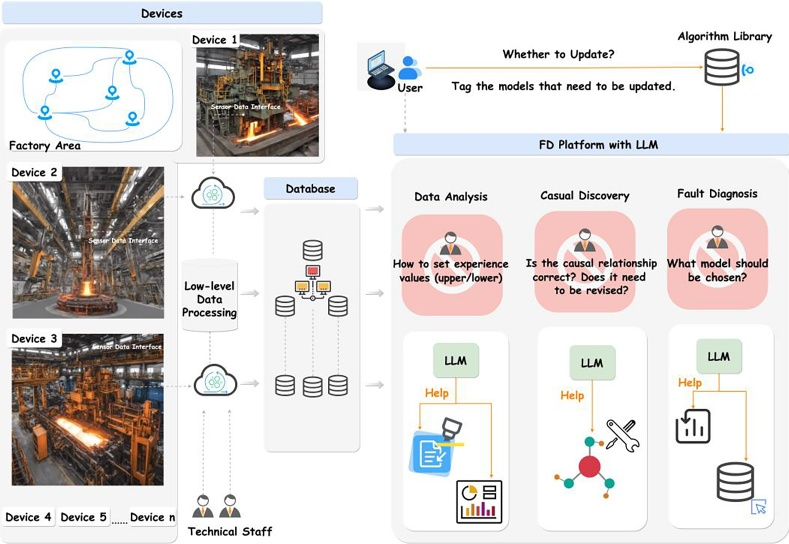 图10 基于LLM的工业时间序列数据故障诊断平台:实施LLM不仅减少了人力和物力资源,而且缩短了平台的开发周期。此外,它有效地利用经验知识来评估因果关系的准确性和所选模型的适当性,以促进决策过程。
