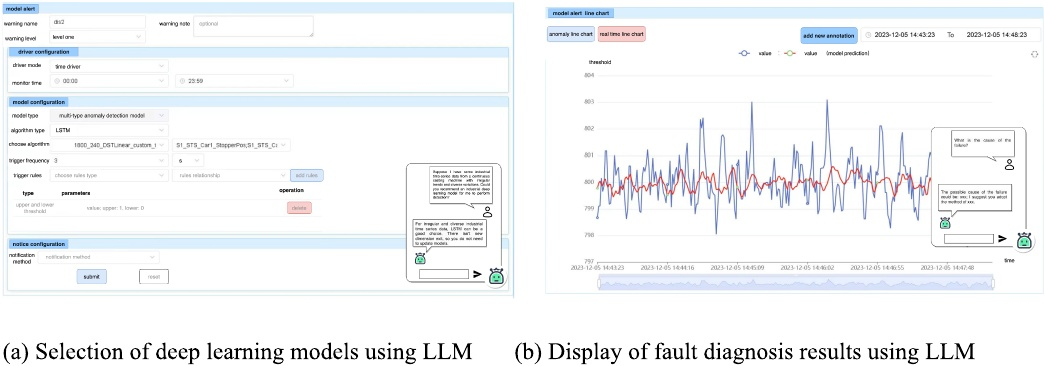 本文将提出的方法与不使用LLM的方法进行了比较。具体而言,开发了一个用于钢铁冶金企业故障诊断的平台。该平台基于深度学习方法,不包含LLM,如图14所示。