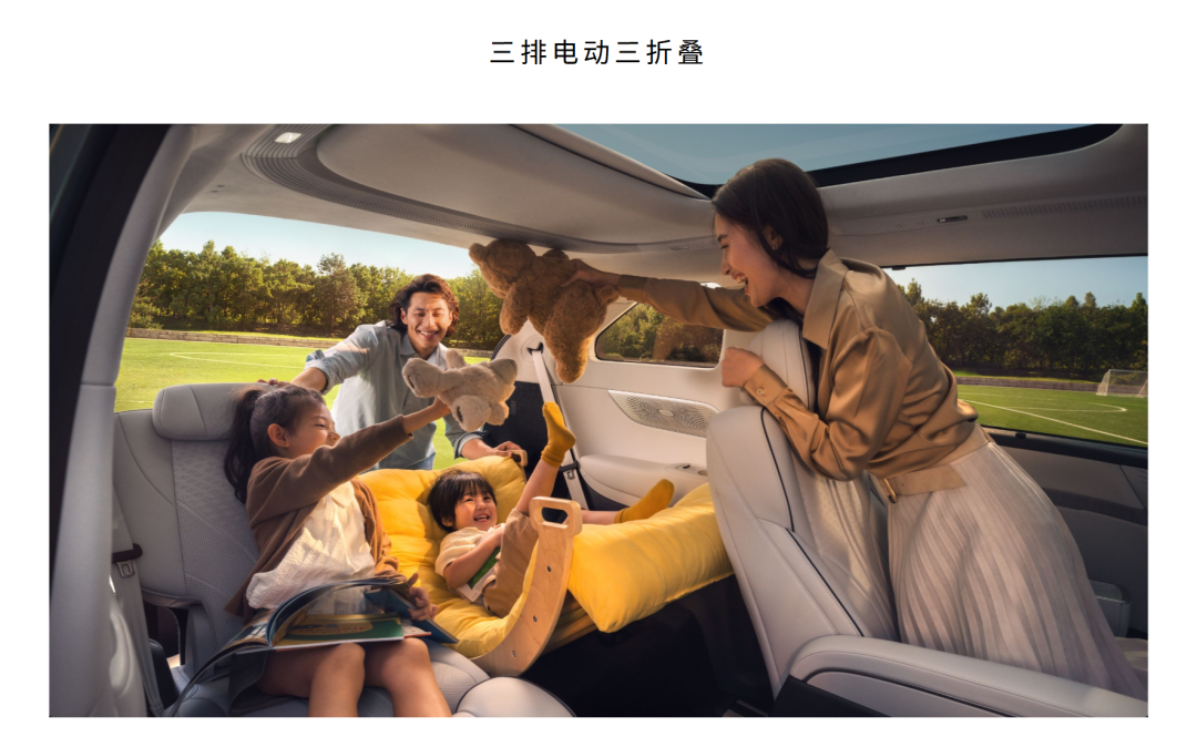 行业首发的三排电动三折叠座椅支持四六分折叠纯平收纳,可灵活切换4-7人出行场景,满足多种用车需求。