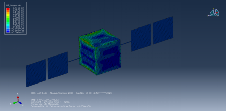 整体变形云图:提供卫星形变的宏观、定性认识,快速定位最大位移区域和整体变形趋势,如整星像“香蕉”一样弯曲。