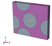 RVE的X方向长度为12.79μm,Y方向长度为11.07μm,Z方向厚度为1.6μm。纤维半径2.6μm,个数为4。