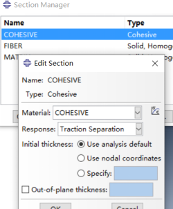 然后对cohesive单元赋予section。粘结层的section设置如下,采用拉伸分离准则(Traction-Separation)。
