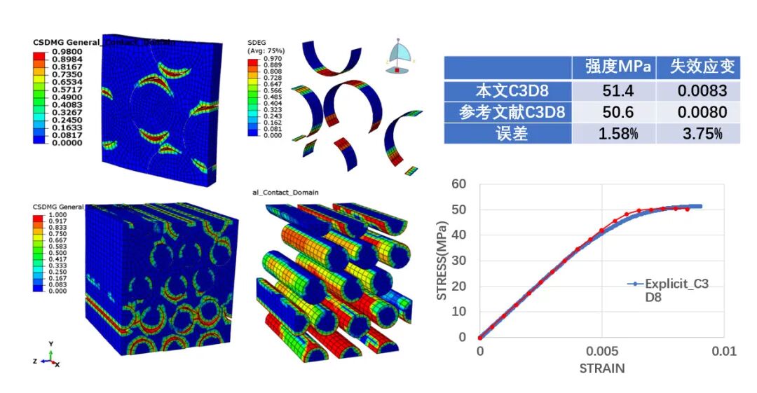 通过与 SCI 文献中 Y 方向拉伸试验结果对比,零厚度 cohesive 单元 RVE 模型的仿真结果表现出极高的可靠性: