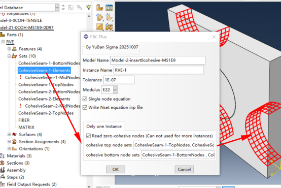 支持含零厚度 cohesive 单元的单部件 RVE 模型 PBC 快速建立,无需手动修改 inp 文件;