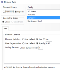 但是二者的不同点为:采用零厚度cohesive单元时,当达到最大应力时,cohesive单元发生单元删除,此时结构会快速失去承载能力,从而导致应力应变曲线的急剧下降。