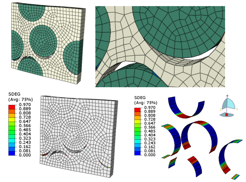 跨尺度衔接:通过零厚度 cohesive 单元 RVE 模型提取宏观等效本构关系,可直接导入宏观结构仿真(如 ABAQUS Explicit),实现 "微观失效 - 宏观响应" 的跨尺度耦合分析,提升结构设计的可靠性。