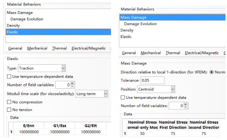 粘结层的材料参数如下表和下图,其中三个方向的模量均为1E8MPa。