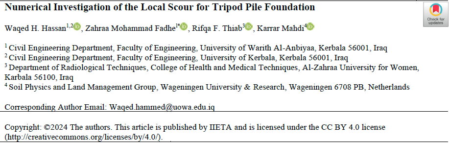 必须研究和计算影响三脚架基础的冲刷值,因为这种现象直接对结构及其设计寿命产生负面影响。较低的对角支撑和主柱充当障碍物,增加了其下方的水流加速度,这增加了移动的颗粒数量,进而产生强烈的冲刷。数值模型与实验模型具有良好的一致性,实验模型与数值模型之间的最大误差为 10%。此外,基于无量纲分析参数,设计了一个经验方程来预测冲刷深度,包括水流深度、中值尺寸比、Keulegan-Carpenter(Kc)、Froude 数和波速,该研究在不同流速和深度下获得的结果表明,最大冲刷深度率取决于波高,随着流速的增加和粒径的减小(d50),当Vw<0.75时,冲刷深度达到稳定值。随着Froude数的增加,最大冲刷深度将变大。