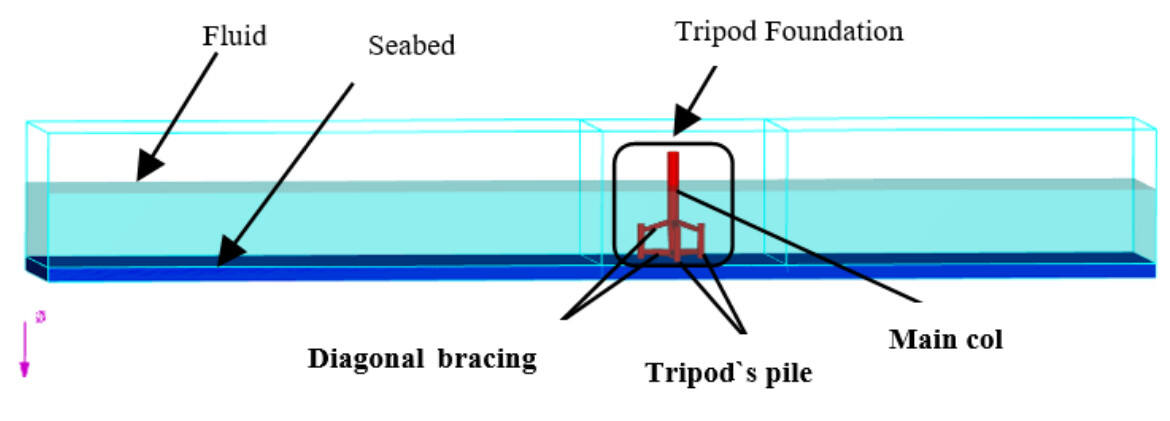 为了模拟三脚架基础周围的冲刷过程,采用了 CFD 软件 FLOW-3D 。利用分数面积/体积法(FAVOR),可以处理域的复杂边界。