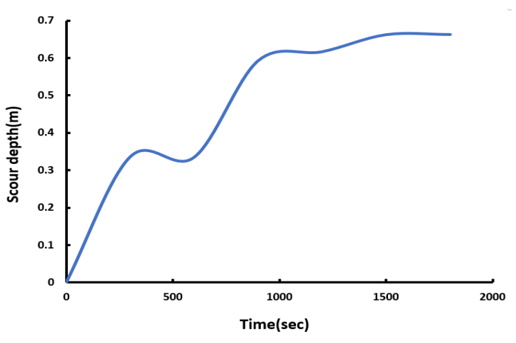图7 三脚架周围冲刷深度发展(至稳态)的模拟时间序列结果