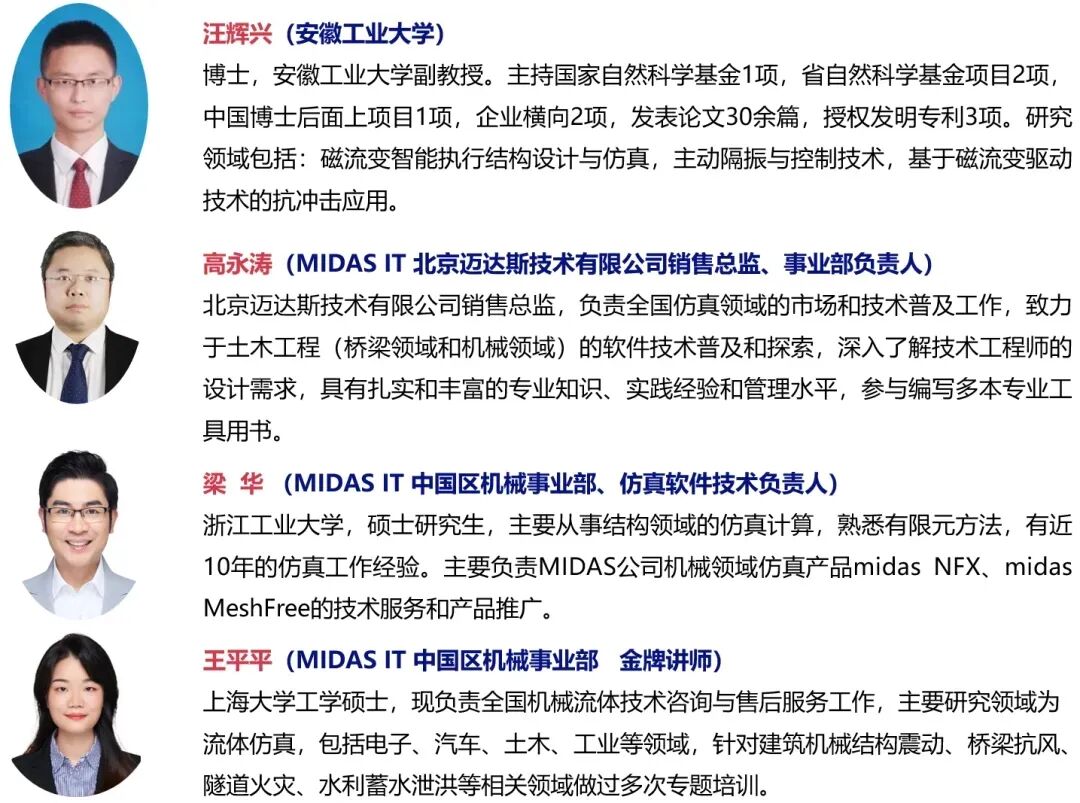 本次培训汇聚高校专家与 MIDAS 核心技术团队,确保教学质量: