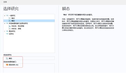 分析物理现象为非稳态热传导,因此选择固体传热模块,研究选择瞬态。