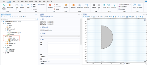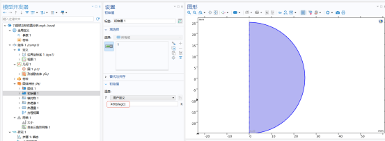 在几何模块生成半径为25mm半圆,即形成了轴对称截面如下: