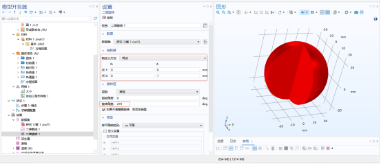 考虑到球的几何形状为二维轴对称,且物理现象也为呈二维轴对称,因此选择二维轴对称几何模型进行仿真