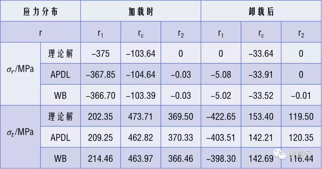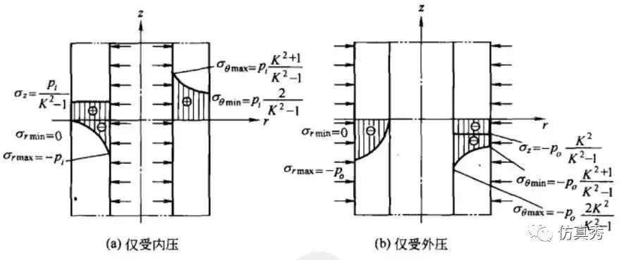 加载时,厚壁圆筒应力分布为: