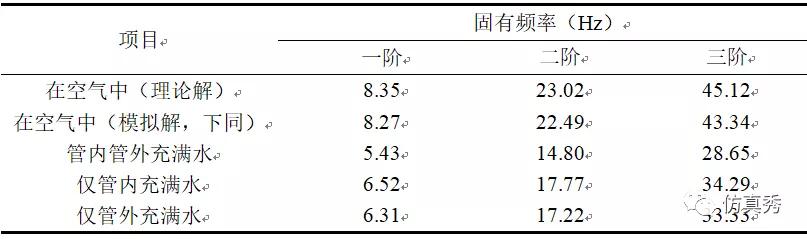 对于管子在空气中的固有频率,根据材料力学知识,容易得到其固有频率为