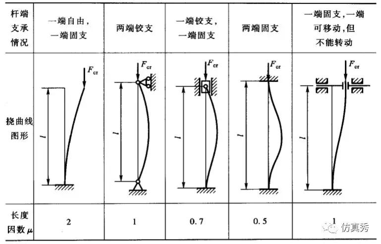 表1 压杆长度系数