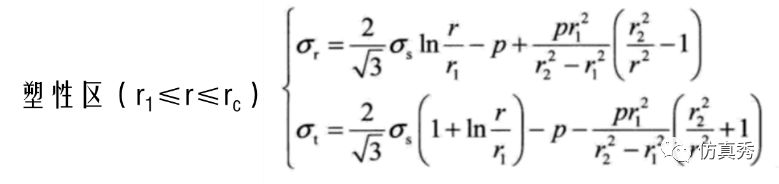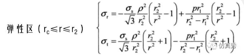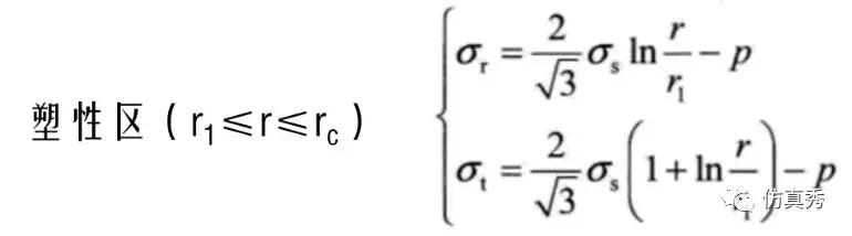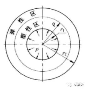 根据弹塑性力学理论,由von Mises屈服条件,弹塑性区分界面半径rc可由下式计算得到: