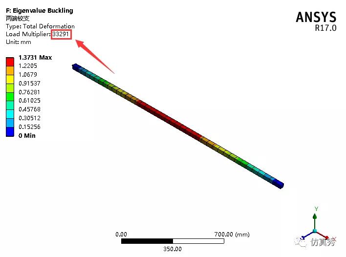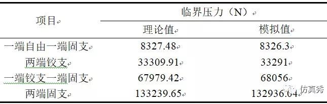 当两端铰支时,得到模拟值为33291N。