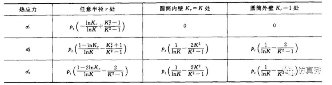 表4 厚壁圆筒中的热应力