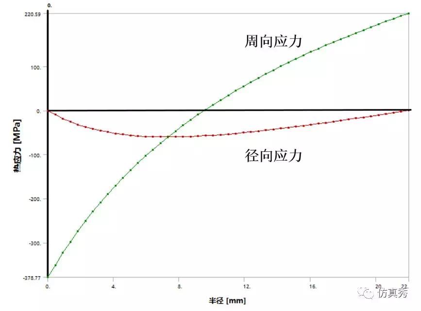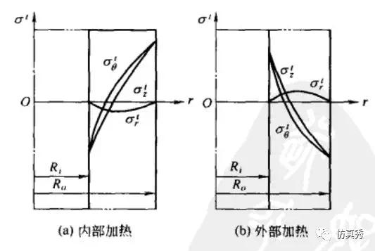 图6 厚壁圆筒中的热应力分布
