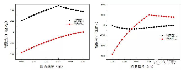 图7 应力随壁厚变化关系