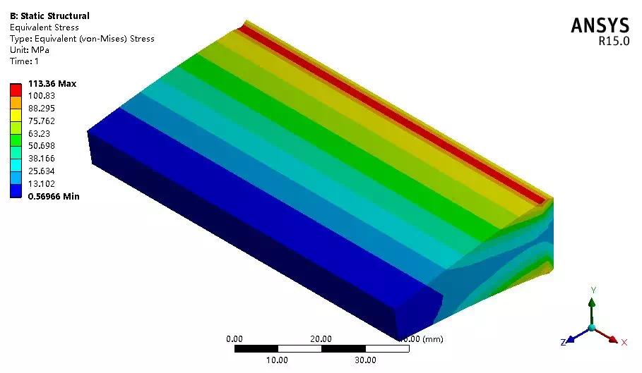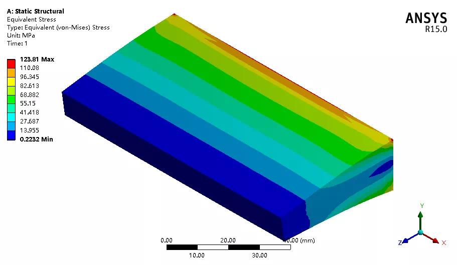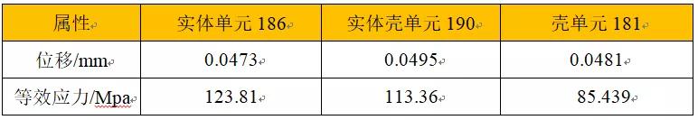 通过结果对比可知,三种单元所得位移几乎一致,壳体单元并不能考虑应力集中,所得应力值偏低,实体单元最接近实际情况,实体壳单元其次,工程应用中在误差允许内可采用实体壳单元直接模拟,节省计算时间。