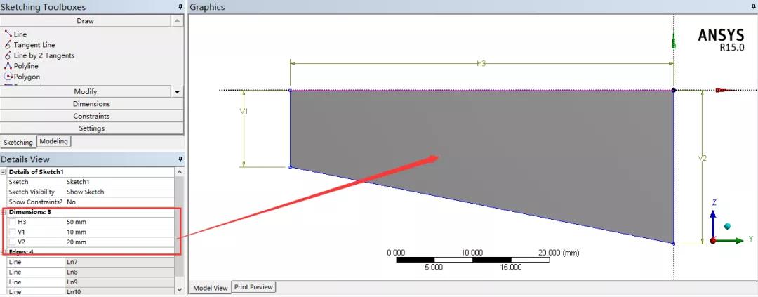 截面尺寸如图1所示,梯形短边长10mm,长边长20mm,高50mm: