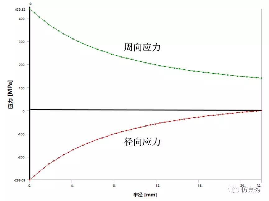 以内外径的壁厚为路径提取应力分布结果如下: