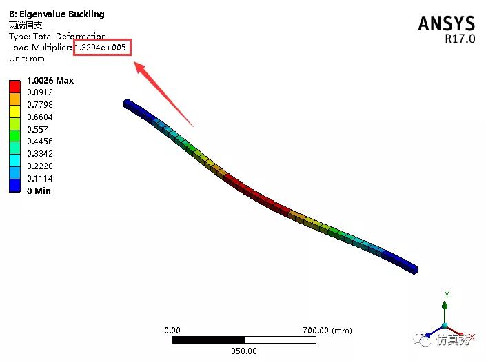 图1 屈曲结果(一端自由一端固支)