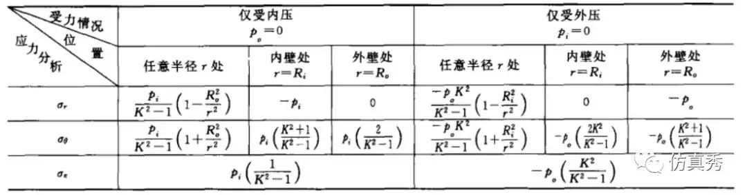 当仅有内压或外压作用时,上式可以简化(径比 ,表示厚壁圆筒的厚度特征)。